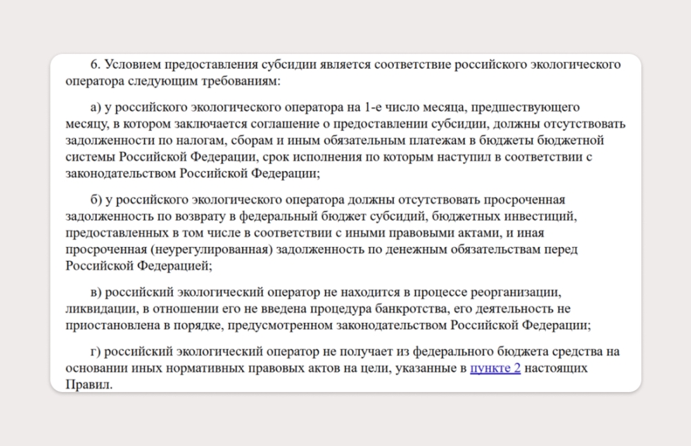 С помощью субсидии можно компенсировать часть затрат — на транспортировку, обработку и утилизацию отходов. Затраты должны быть подтверждены документами.