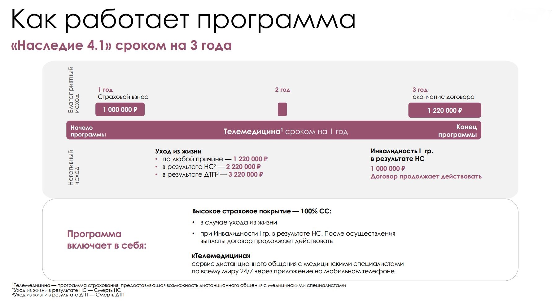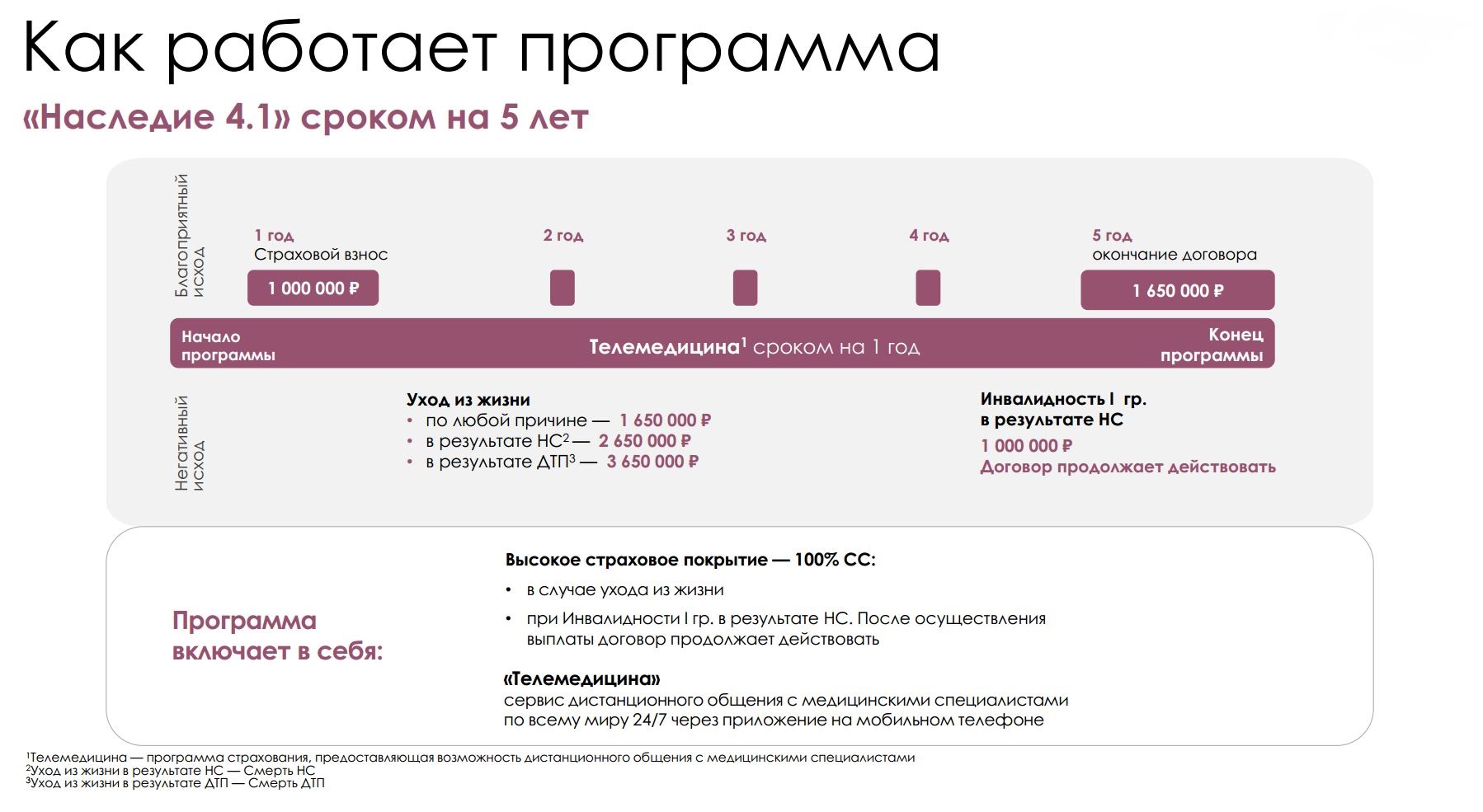 По окончании срока программы вы получите денежные средства на реализацию значимых жизненных событий независимо от состояния здоровья
