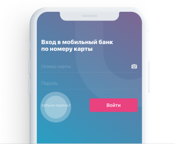 Восстановление доступа осуществляется по номеру карты и номеру телефона. В мобильном приложении нажмите «Забыли логин или пароль?»