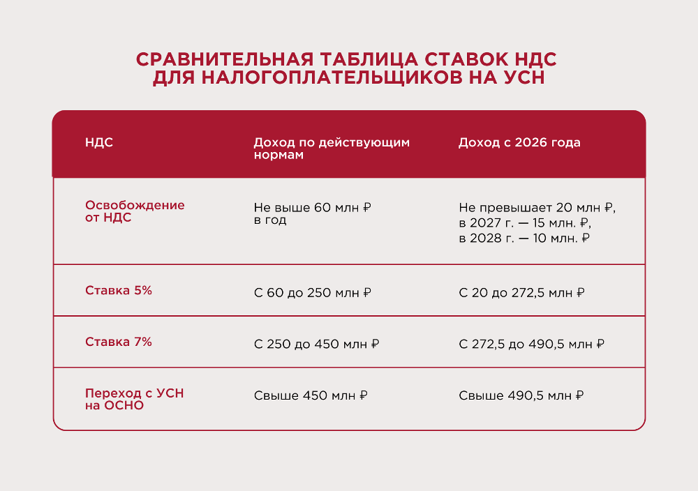 Сравнительная таблица ставок НДС для налогоплательщиков на УСН