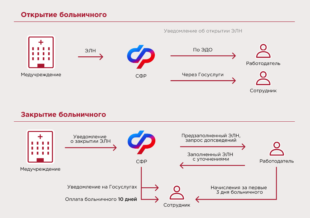 Порядок взаимодействия участников ЭДО при открытии, закрытии ЭЛН и выплате больничного