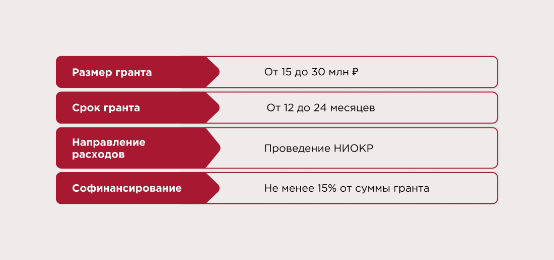 Получить грант могут компании, которые уже занимаются разработкой и продажей наукоёмкой продукции или планируют осваивать её новые виды. В программе участвуют только субъекты малого бизнеса, у которых нет незавершённых договоров гранта.