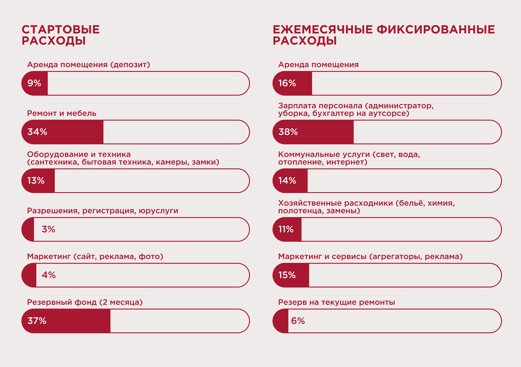 В бизнес-плане нужно наполнить структуру расходов конкретными суммами. Например, стартовые статьи затрат для гостиницы в крупном региональном городе составляют примерно 3,5 млн рублей. А именно: