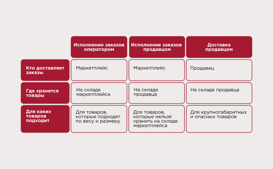 Популярная схема работы, которую можно выбрать на основных маркетплейсах: Ozon, Wildberries, «Яндекс Маркете» и «Мегамаркете».