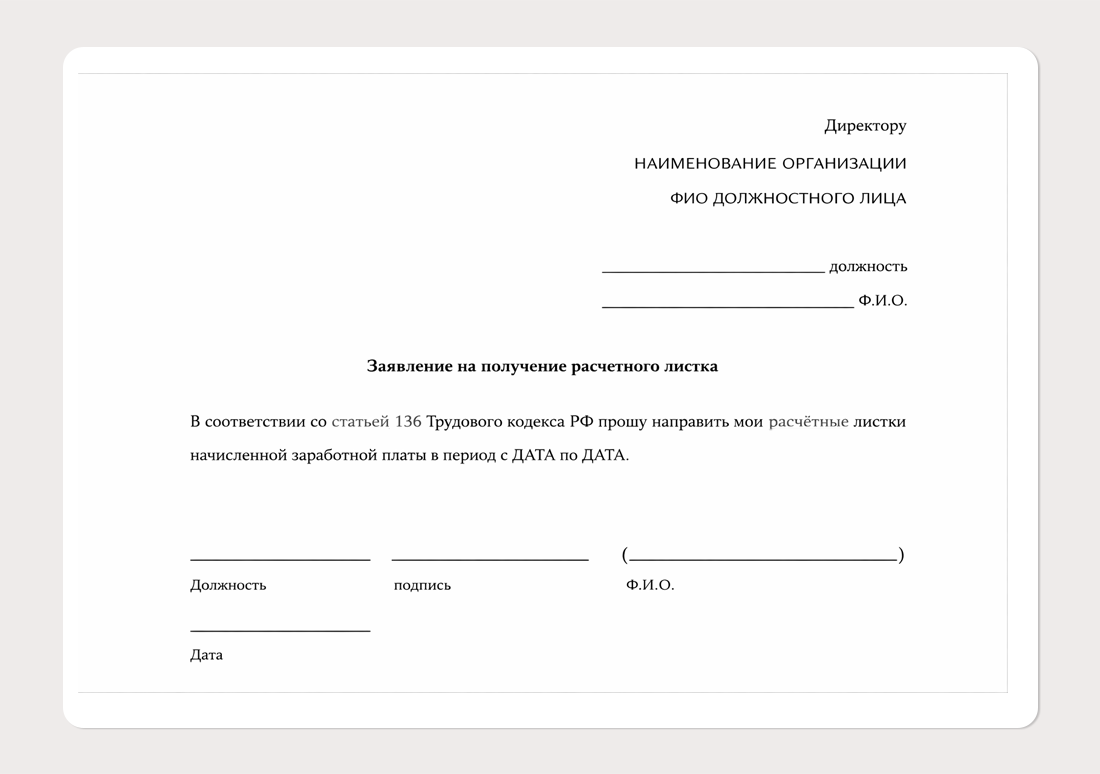 В заявлении обязательно укажите период, за который вы хотите получить расчётные листки
