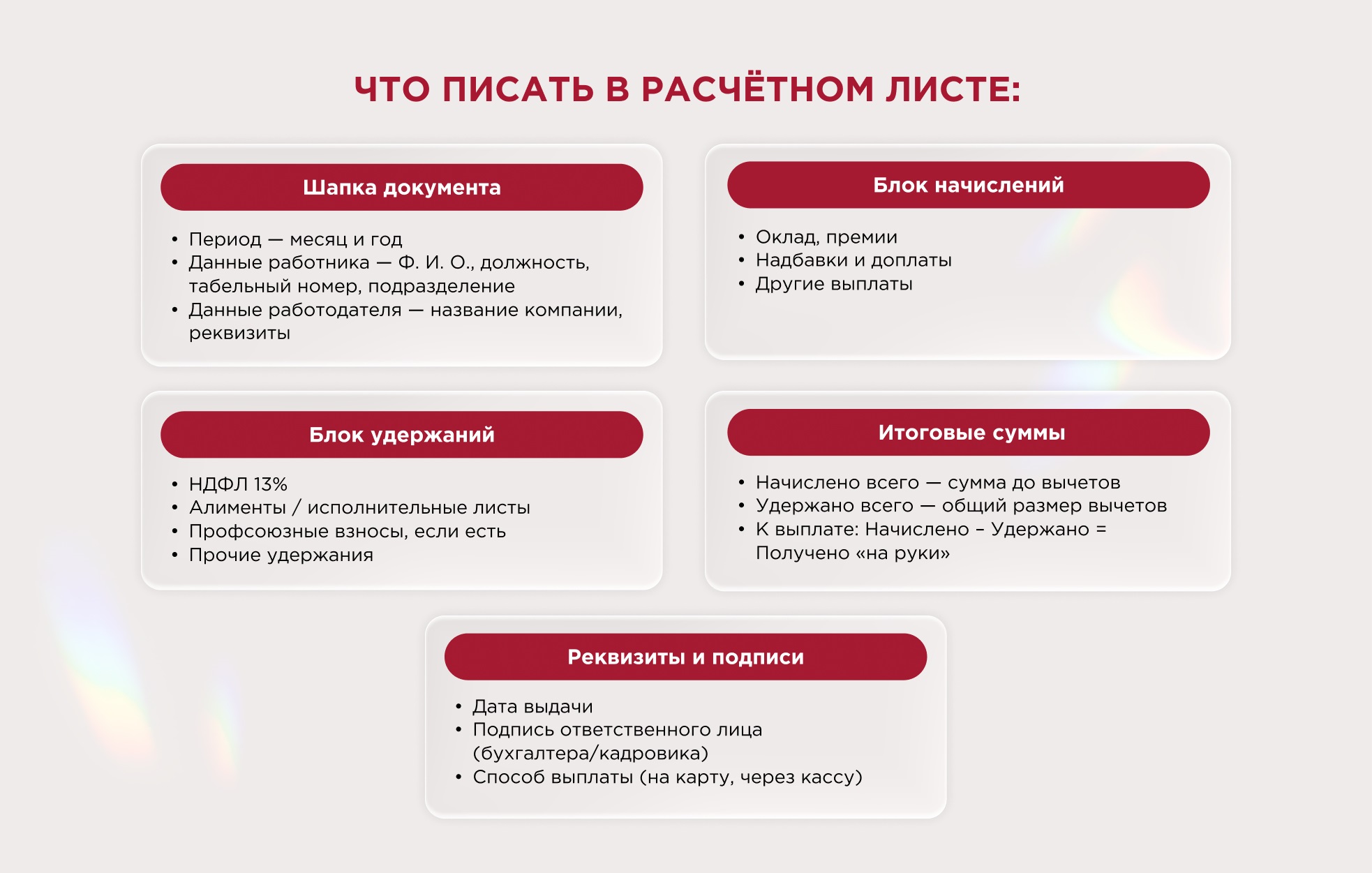 Что должно быть в расчётном листке