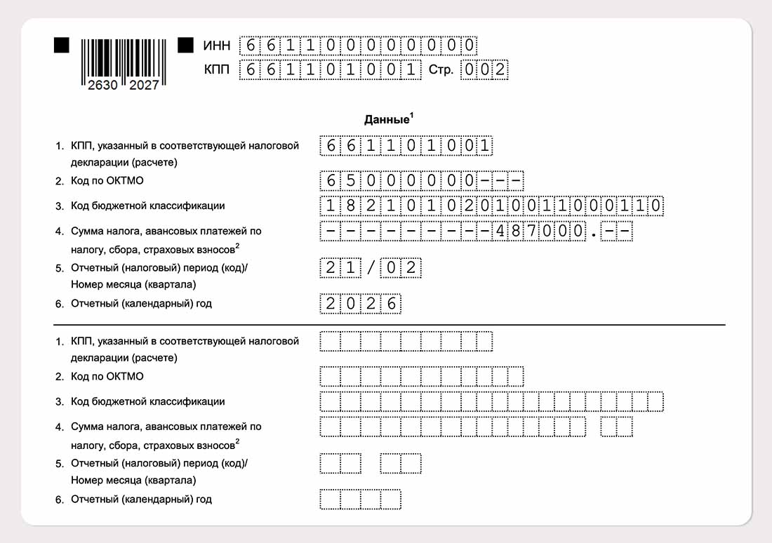 В 2024 году переходный период отменили и перестали отправлять обычные платёжки с КБК отдельных налогов. В 2026 году работодатели только подают уведомление по НДФЛ и перечисляют НДФЛ вместе с иными платежами на Единый налоговый счёт (ЕНС).
