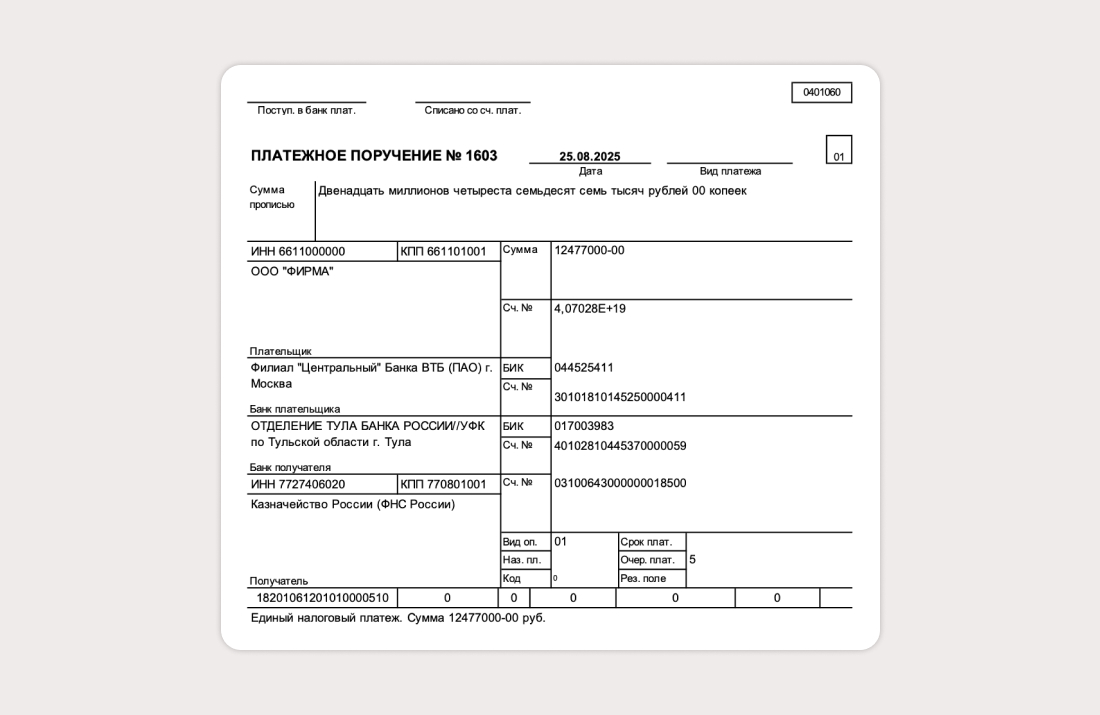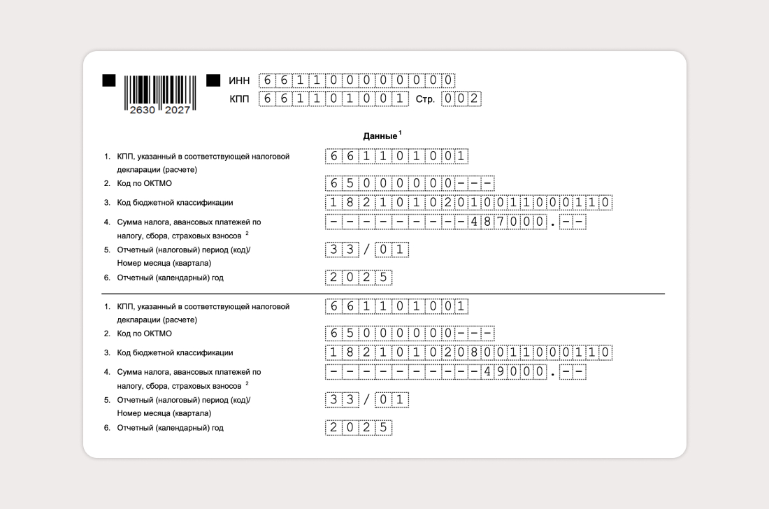 Переходный период отменили и платёжки вместе с ним. В 2025 году работодатели — налоговые агенты только подают уведомление по НДФЛ и перечисляют НДФЛ вместе с иными платежами на Единый налоговый счёт (ЕНС).