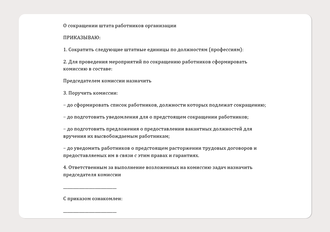 Образец приказа о сокращении штата (численности)