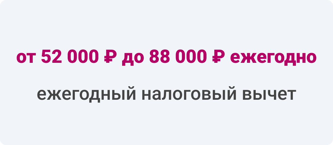 В зависимости от размера взноса в течение года на ИИС возврат составит: от 52 000 ₽ по НДФЛ 13%, до 88 000 ₽ по НДФЛ 22% ежегодно |